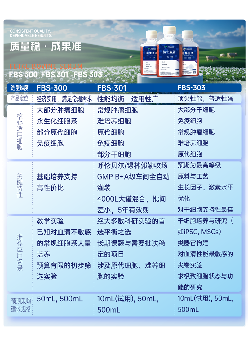 1.1 产品矩阵全解析:三款明星血清,覆盖所有科研场景。